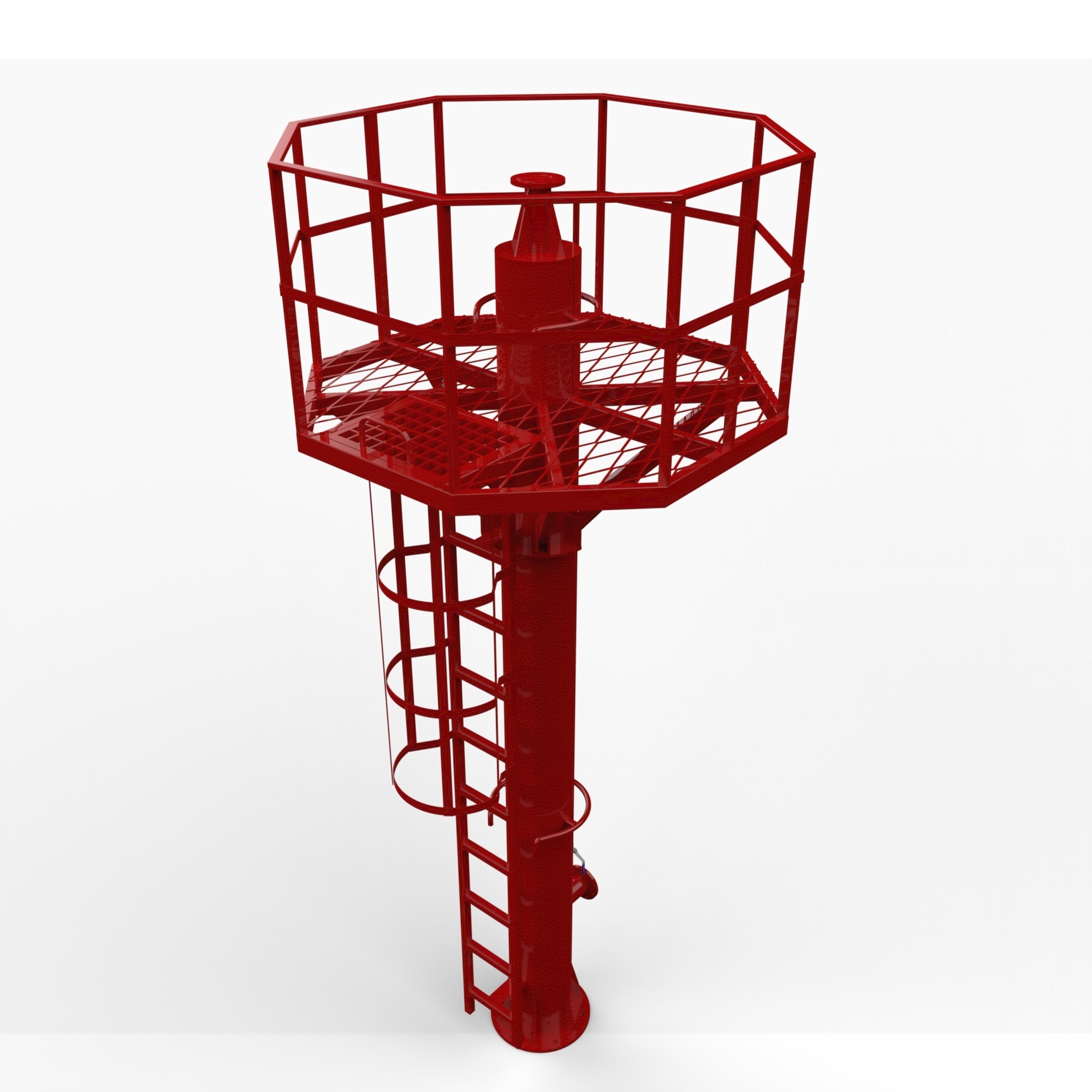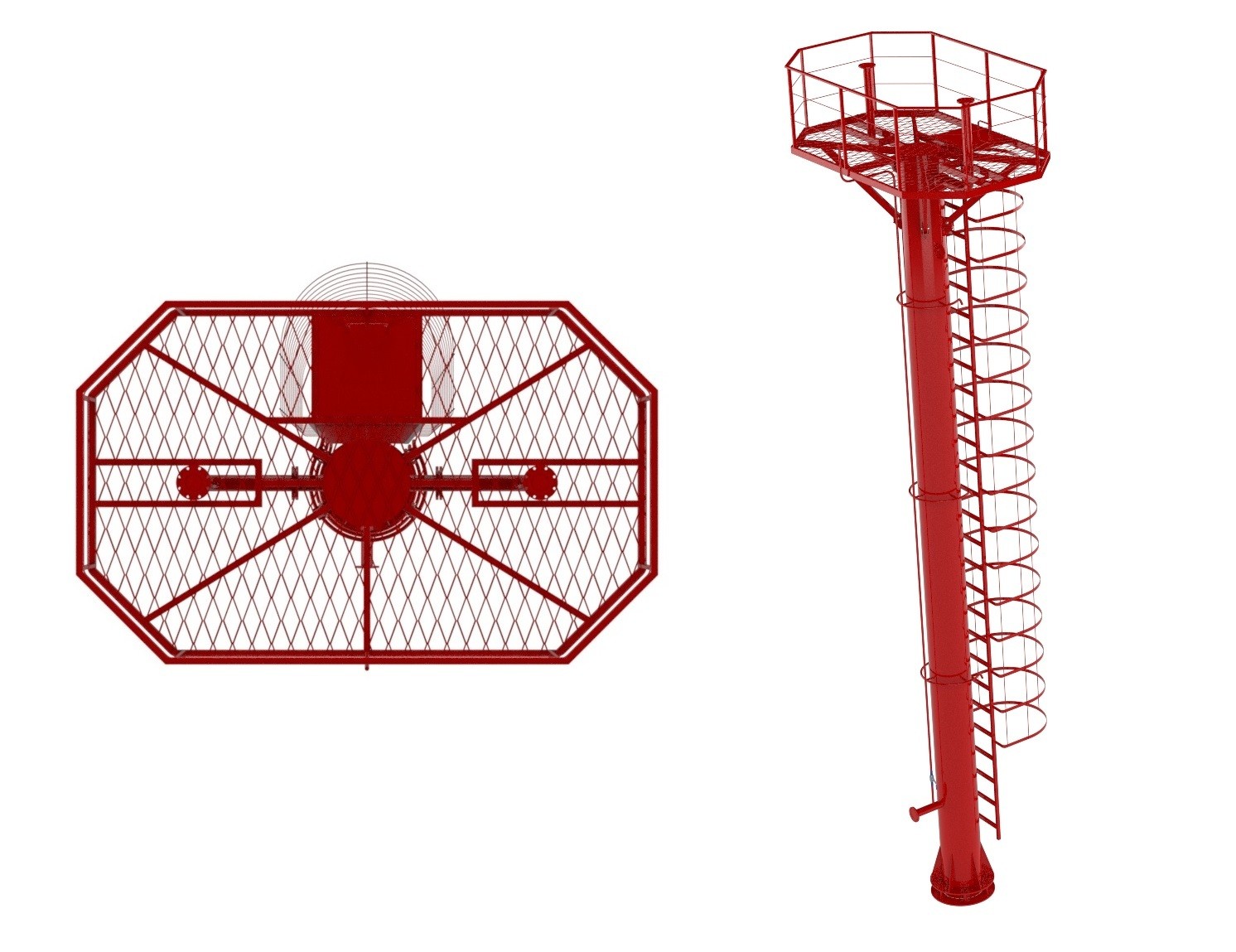 Также вы можете заказать пожарные вышки с разными типами площадок: восьмиугольная; двенадцатиугольная или круглая. По периметру обязательно ограждение для обеспечения безопасности ствольщика.