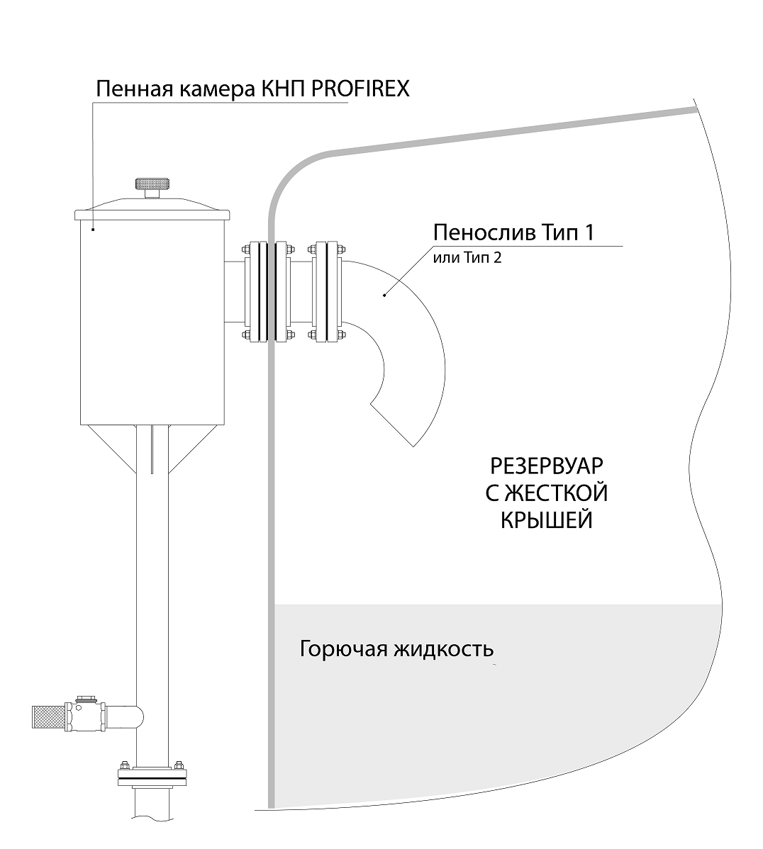 ТИП 2для направления пены на зеркало нефтепродукта вдоль стенки резервуара |