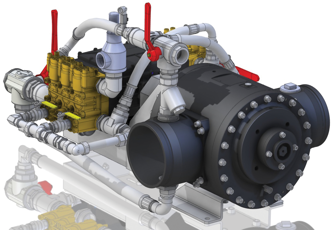 Измерительный узел, состоящий из тахометра, магнитного расходомера и регулирующего клапана, позволяет проверять точность дозирования без создания огнетушащего раствора и подачи его в линию. |
