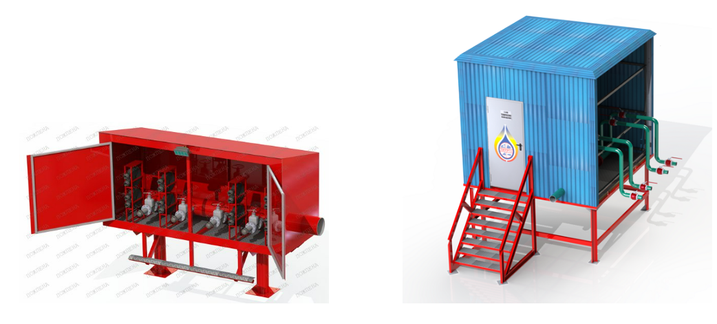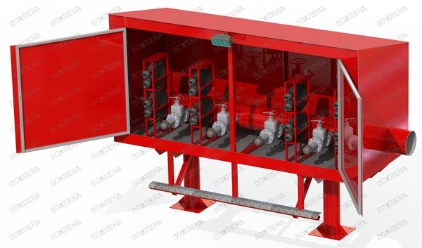 Коллектор, патрубки с шаровыми кранами внутри БПГ, емкость для хранения пенообразователя оборудуются теплоизоляцией и электрообогревом.- отделение для хранения пожарно-технического вооружения (переносной лафетный ствол на 20 л/с, ствол низкократной пены СПН-5, генератор пены средней кратности повышенной дальности, трехходовое разветвление, набор ключей). Системой обогрева Блок бокса пожарных гидрантов (по требованию заказчика)