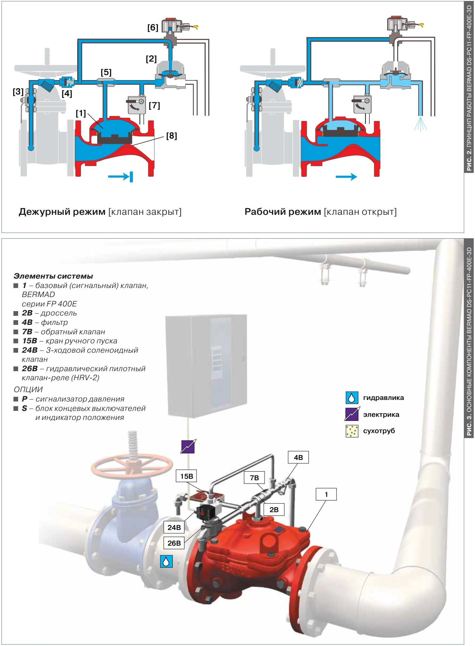 Узел управления BERMAD PC11-FP-400E-3D применяется в дренчерных системах с электрической системой обнаружения возгорания.