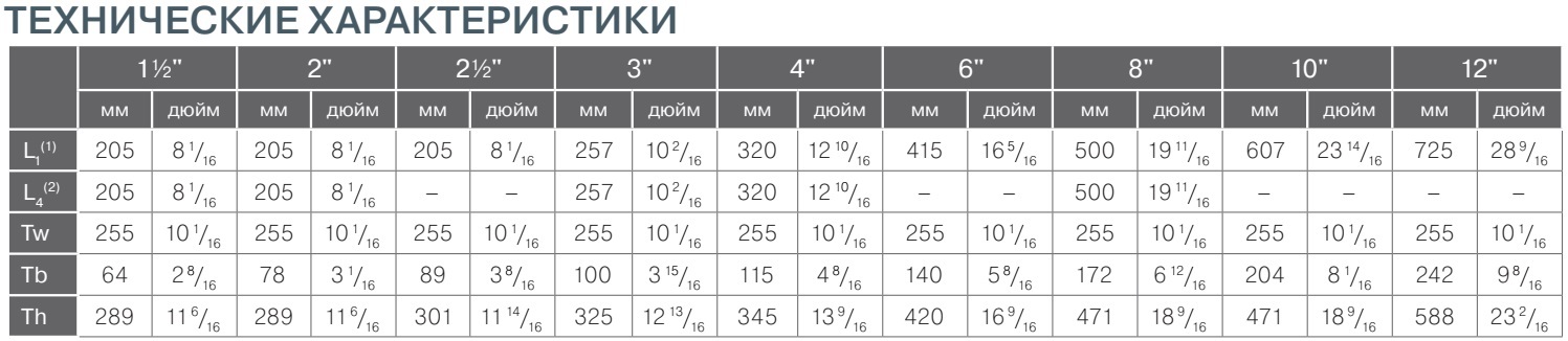 UL-Listed: 1½, 2, 2½, 3, 4, 6, 8 и 10”.
