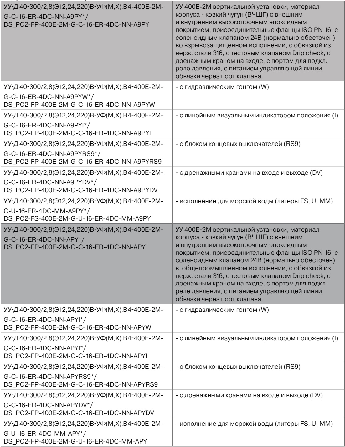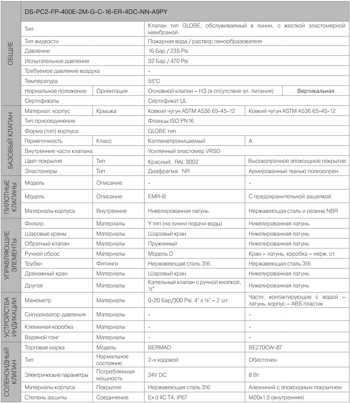 Спецификация на дренчерный узел управления BERMAD PC2-FP-400E-2M-G-C-16-ER-4DC-NN-A9PY (обозначение по ГОСТ Р 51052-2002: УУ-Д 40-300/2,8(Э12,24,220)В-УФ(М,Х).В4-"400E-2M-G-C-16-ER-4DC-NN-A9PY") во взрывазащищенном исполнении