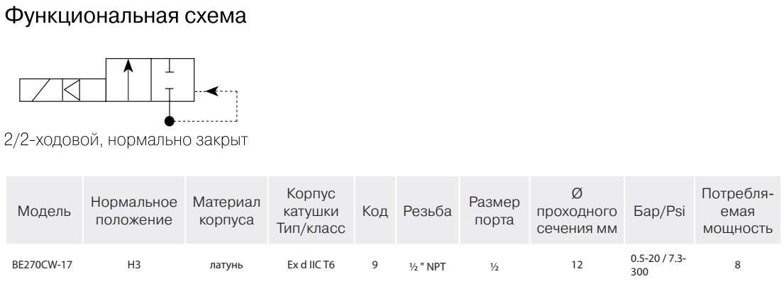СОЛЕНОИДНЫЙ КЛАПАН BE270CW-17