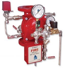 - Дренчерный клапан, является запорным клапаном типа Globe, электрически управляемый, с эластомерной литой диафрагмой, имеет сертификат UL.