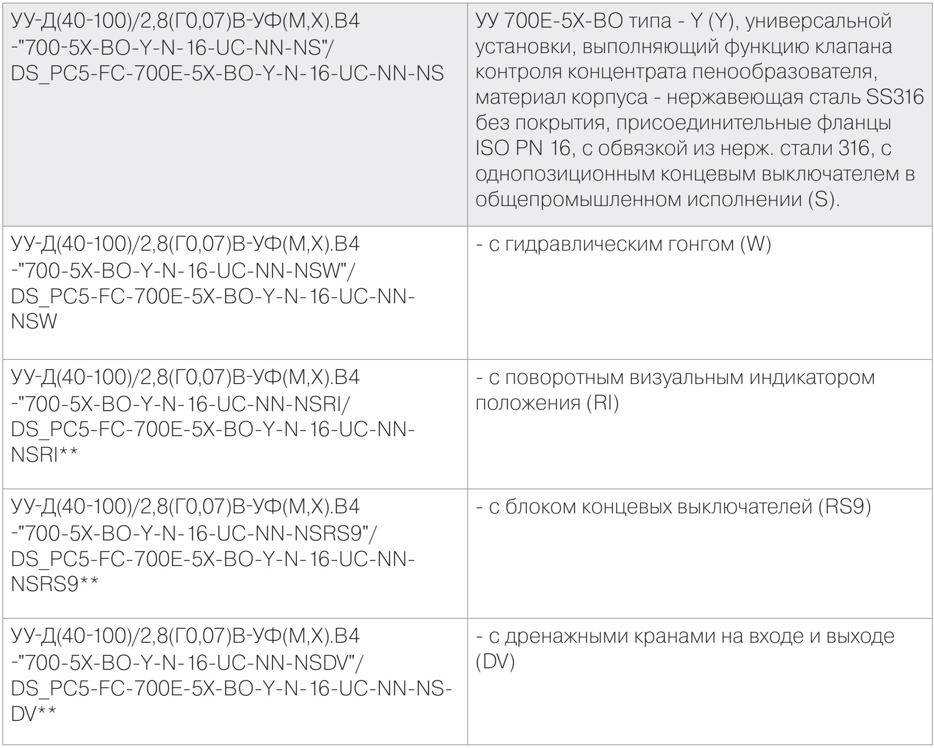 Ниже приведены примеры формы записи при заказе узла управления с самыми распространенными опциями. В случае, если необходимо заказать узел управления с нескольким опциями, в конце заказного кода следует последовательно указать все символы, обозначающие данные опции.