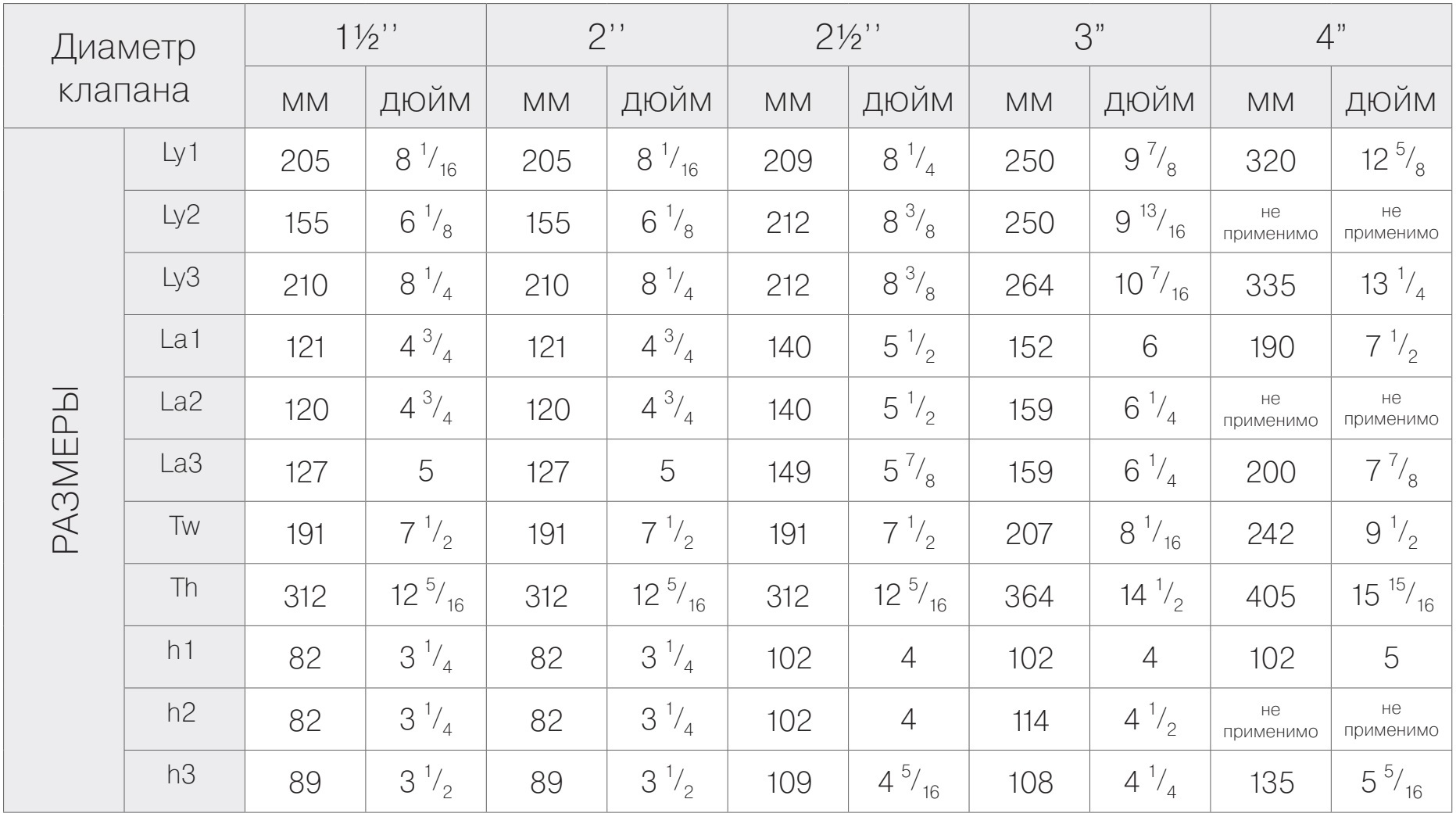 2. Ly2, La2 и h2 - для муфтовых резьбовых соединений NPT или BSP.