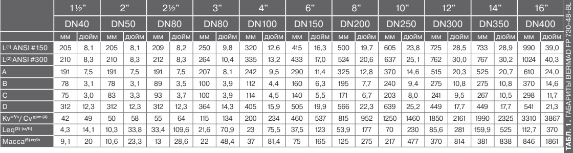 (1) для фланцев RF, ANSI #150, ISO 16 и для муфтового и хомутого исполнений.