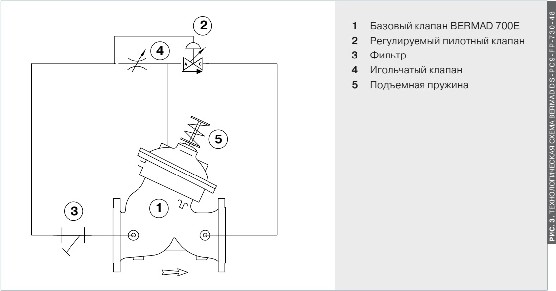 BERMAD PC9-FP-730-48 – это автономный узел управления, управляемый давлением рабочей среды и не требующий прочих источников питания.